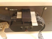 Das Gerät an sich verfügt über ein integriertes Netzteil wodurch es an 230V betrieben wird. Auf der Front hat es einen Power- Schalter und drei Tasten. Je eine zum vor- und zurück spulen sowie eine die mit „Start“ beschriftet ist. Ebenfalls gibt es eine grüne Power- LED sowie eine rote welche mit „error“ beschriftet ist. Wenn man es nur am Strom anschliesst und ein Band einspannt, kann man durch halten der entsprechenden Tasten das Gerät in Bewegung setzen. Die grundsätzliche Mechanik funktionierte also.