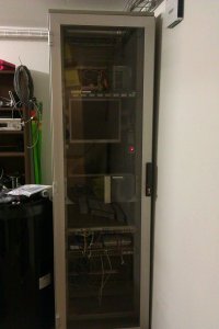 Unser Serverschrank ist mittlerweile sauber eingerichtet, einem 24/7h Betrieb stehet nichts mehr im Weg..