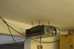 Wir haben dank HPO einen Beamer im Ruum42. Dieser ist jedoch schon etwas älter und entsprechend schwer und sperrig. So ist recht schnell der Bedarf nach einer Aufhängung aufgekommen. Abgesehen davon braucht der Beamer mit Aufhängung auch keinen Platz mehr im Gestell.